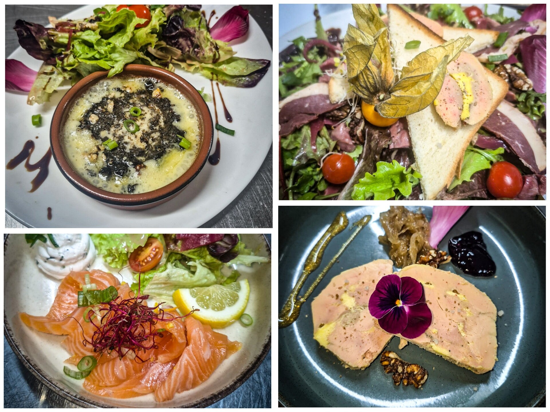 -Salade périgourdine au magret de canard fumé, toast de foie gras et gésiers confits